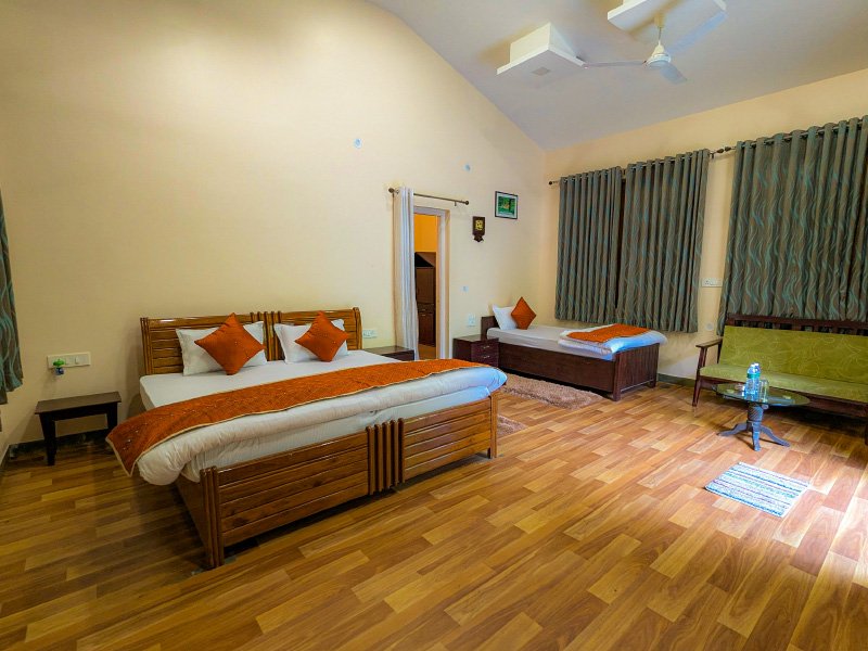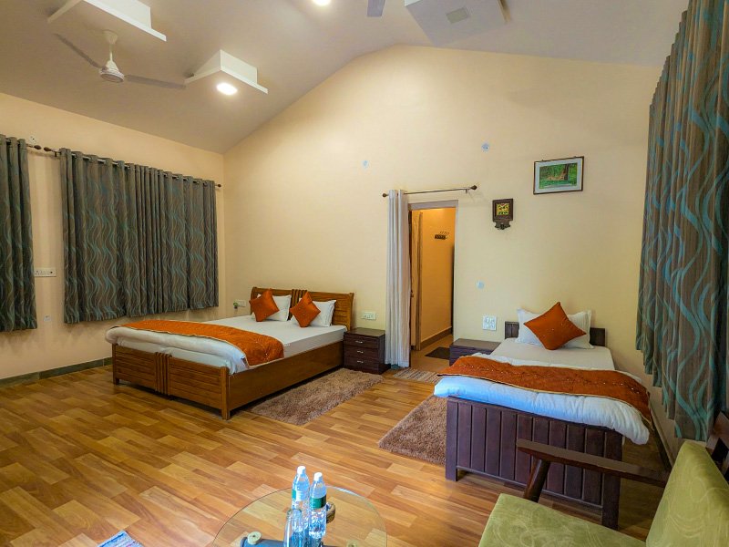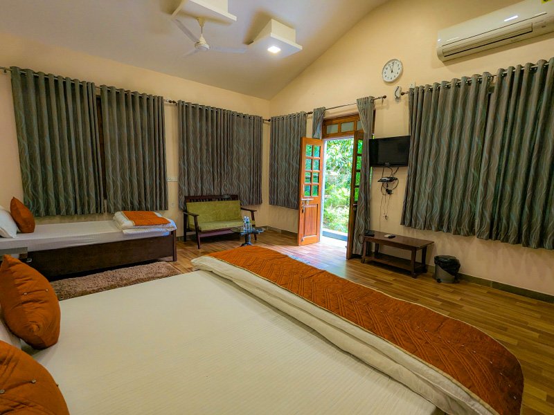Experience the charm of the jungle in our thoughtfully designed Jungle Cottages, surrounded by tall trees and natural landscapes. These spacious cottages feature elegant interiors, comfortable bedding, and modern amenities, creating a perfect balance between rustic living and contemporary comfort. Ideal for couples and families, it’s a tranquil retreat after an adventurous jungle safari.