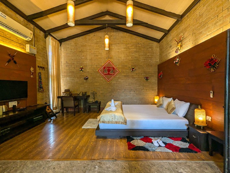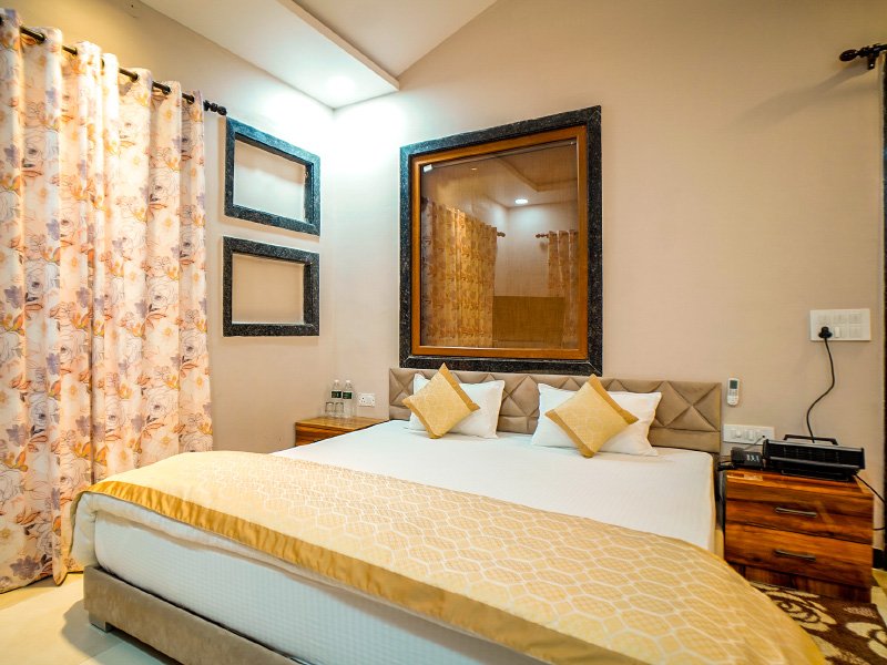 Our Deluxe Rooms offer a comfortable and calming stay with warm interiors, modern amenities, and a peaceful ambience—ideal for solo travellers, couples, and friends.
