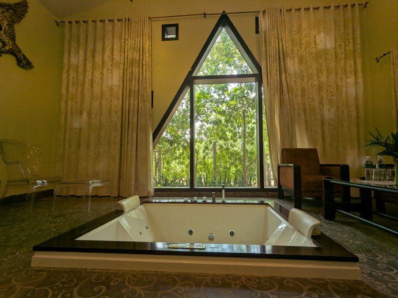 The suites have been thoughtfully crafted to transport you to a luxury tucked away in lush wilderness. The large bay window ensure nature embraces you gently yet in all its glory. The Suites present incredible view of the free flowing river which can even be enjoyed as you laze in the jacuzzi.